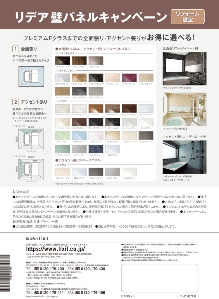 🍎システムバスルーム【リデア】壁パネルグレードアップがお得に✨