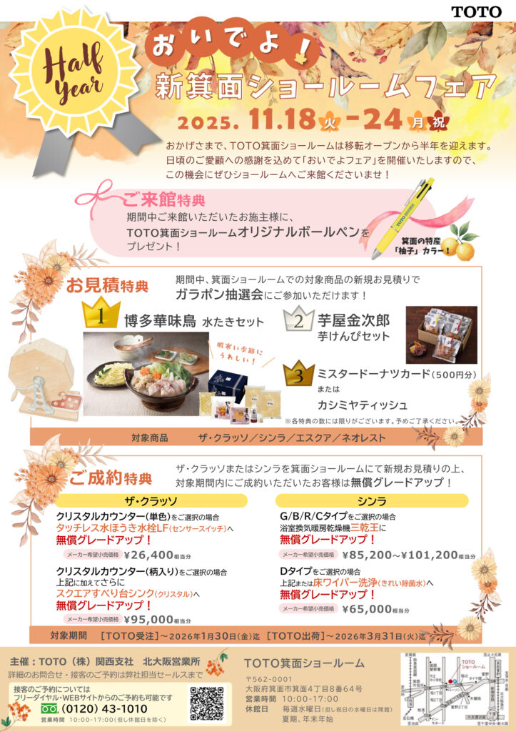 移転オープンから半年を迎えたTOTO箕面ショールームでフェアが行われます🍁