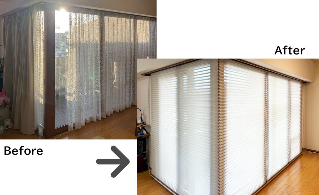 西日が強い🌞窓の断熱性アップのために、カーテンからハニカムスクリーンに取替えました。