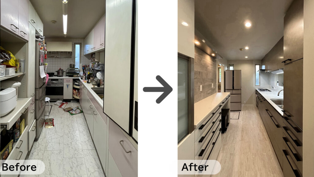 食器乾燥機や換気扇の故障、扉の不具合などが増えてきたため、キッチンをリニューアルしました。